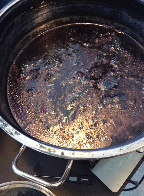 | Het indigobad heeft een geelpaarse kleur en schuim aan het oppervlak |